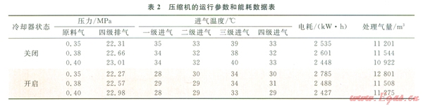 1)在分析現(xiàn)有CNG壓縮機工藝與理論的基礎(chǔ)上,提出了通過降低壓縮機級間溫度與含液量來提高壓縮機效率,達到了節(jié)能降耗的目的。