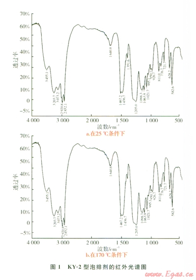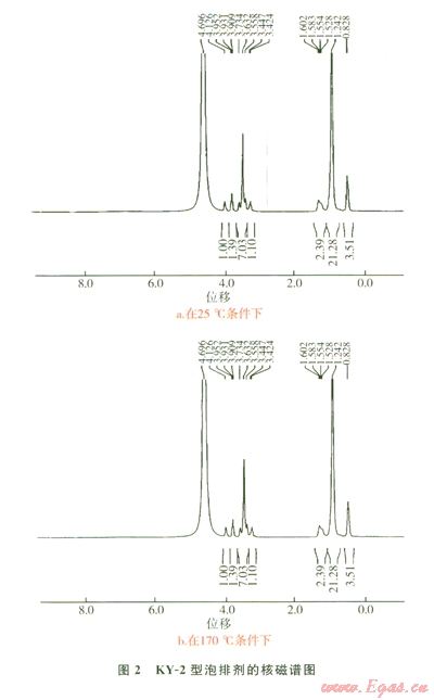 核磁共振和紅外光譜能很好地反映出泡排劑的分子結(jié)構(gòu),同時還可以由核磁譜圖和紅外譜圖分析出泡排劑所含的基本官能團,通過這些基本官能團推測泡排劑在