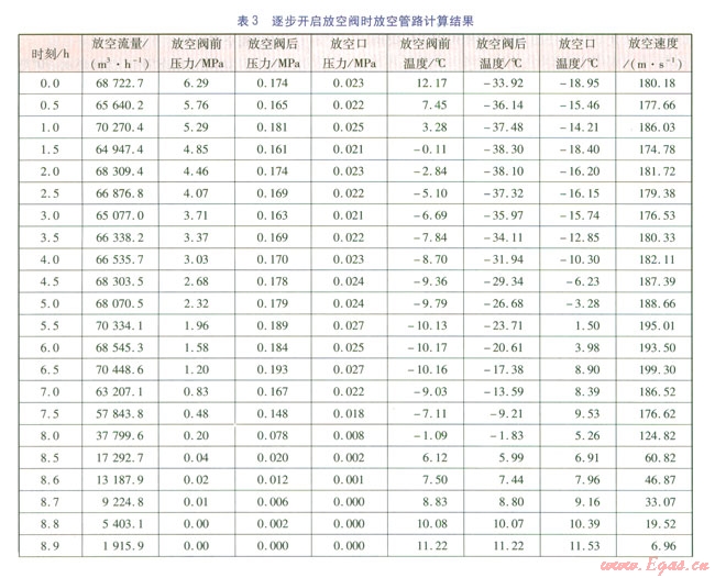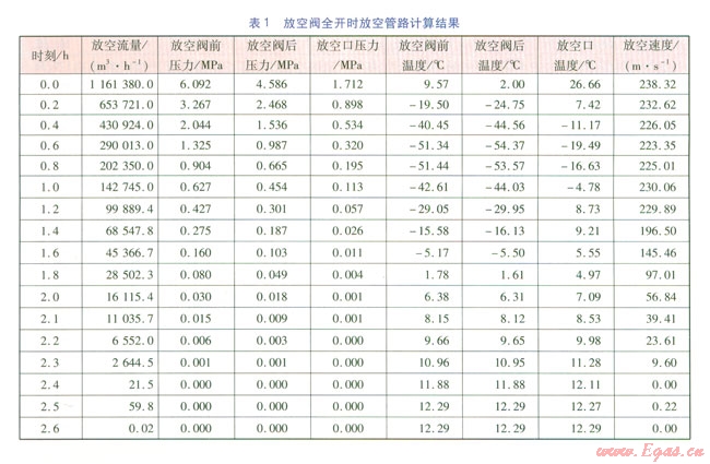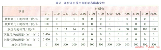 根據(jù)放空模型,建立動態(tài)腳本文件。在0時刻截斷閥門l和截斷閥門2關閉,逐步開啟放空閥,放空口直徑為