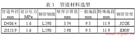 設(shè)計(jì)強(qiáng)度系數(shù)可根據(jù)《城鎮(zhèn)燃?xì)庠O(shè)計(jì)規(guī)范》(GB50028—2006)的分級地區(qū)選取合理系數(shù),高壓、次高壓管道已采用了較高等級的材料,焊接系數(shù)取1。如寶雞市天然氣三期利用工程就使用D406.4螺旋縫埋弧焊鋼管和D323.9直縫埋弧焊鋼管,材質(zhì)L290MB,B級鋼管,設(shè)計(jì)壓力1.6MPa,壁厚根據(jù)管線敷設(shè)所在不同地區(qū)劃分標(biāo)準(zhǔn)(考慮了今后發(fā)展),其選取如表1所示: