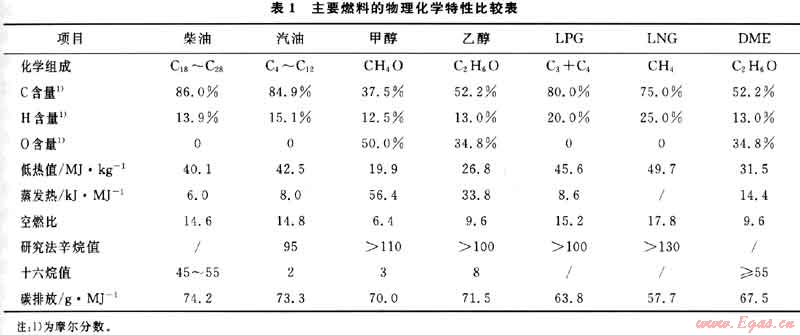 在石油供應及其價格隨世界地緣政治和經(jīng)濟形勢變化而不斷劇烈波動的21世紀,天然氣作為發(fā)動機燃料有很多優(yōu)點:單位熱值(比能量)最高,尾氣排放最少,C02排放僅為同熱值汽柴油排放量的3/4,利于改善大氣質(zhì)量,供應可靠,價格低且穩(wěn)定少波動。主要燃料的物理化學特性比較見表1[2]。