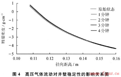 圖4給出了高壓氣體高速流動(dòng)對(duì)產(chǎn)氣層井壁穩(wěn)定性的影響關(guān)系。