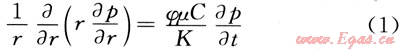 高壓產(chǎn)氣層被氣體鉆井揭開后,高壓氣體在壓力勢(shì)差作用下流出產(chǎn)層,導(dǎo)致近井壁地帶孔隙壓力減小,可利用多孔介質(zhì)線性單相滲流基本方程評(píng)價(jià)地層孔隙壓力分布情況。