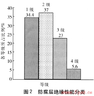 根據(jù)SY/T 5919—2009《埋地鋼質管道陰極保護技術管理規(guī)程》,防腐層技術等級劃分及采取的維修方式見表2。