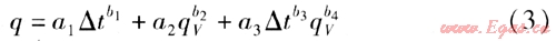 應(yīng)用非線性兩元三因素回歸方法,地板散熱量計算公式為: