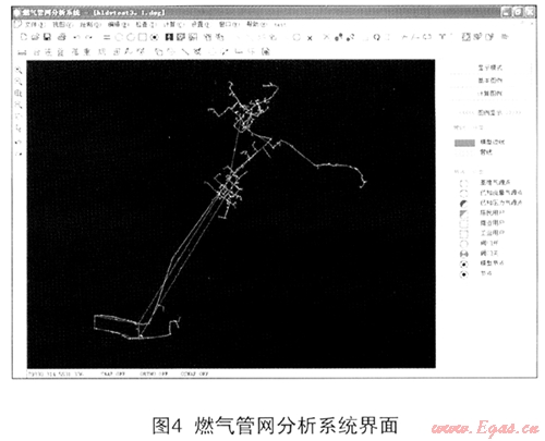 燃?xì)夤芫W(wǎng)分析系統(tǒng)是采用AutoCAD控件組態(tài)成人機(jī)交互平臺,在圖形操作上更加方便、靈活。其主要功能如下:
