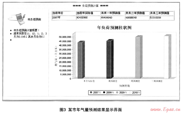 城市燃?xì)夤芫W(wǎng)建設(shè)項目立項之前,需要進(jìn)行燃?xì)庥脷饬款A(yù)測分析,如果沒有用戶,沒有燃?xì)馐褂眯枨螅敲赐顿Y建設(shè)的管線項目投資收益率低,從某種程度上講,投資時間過早或不宜,投資決策失誤。應(yīng)用氣量預(yù)測系統(tǒng)中的年用氣量預(yù)測功能模塊對城市燃?xì)馕磥?年用氣量進(jìn)行預(yù)測,可以對燃?xì)鈿饬课磥戆l(fā)展有進(jìn)一步的認(rèn)識,從而為項目投資決策提供重要依據(jù)。