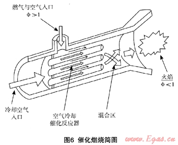 ,一次空氣系數(shù)α<1為富氣,過??諝庀禂?shù)α>1為貧氣。 上述擴散火焰燃燒和貧預(yù)混燃燒的特點是:在擴散火焰燃燒中,燃氣和空氣是由分離的通道導(dǎo)入。燃氣和空氣流混合處的火焰是穩(wěn)定的,在接近Φ=1(或α=1)時,燃燒進行得十分迅速,火焰溫度很高,在空氣中足以形成N0x。但貧預(yù)混式燃燒是燃氣與壓縮空氣預(yù)先混合,過??諝饨档土嘶鹧鏈囟龋强梢员苊鉄酦0x的形成。但燃燒室應(yīng)在當量比Φ很小的范圍內(nèi)操作,避免Φ<0.5(α>2)時的熄火和Φ>0.6(α<1.6)時NOx的形成。