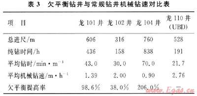 從表3可以看出,在沙一段至馬鞍山組層段,與常規(guī)鉆井技術相比,欠平衡鉆井能夠明顯提高機械鉆速,其中,與龍104井對比,最高可達206%。