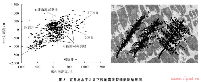 采用上述方法,通過井下微地震波測試,證實(shí)頁巖氣直井滑溜水大規(guī)模壓裂和水平井分簇射孔分段壓裂形成網(wǎng)絡(luò)裂縫,提高了壓裂改造效果(圖3)。
