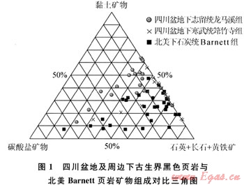 美國5大含氣頁巖的有機碳含量均較高,其中Barnett頁巖有機碳含量介于2.0%~7.0%,平均為4.5%,Antrim頁巖和New Albany頁巖有機碳含量部分超過20%,吸附氣含量最低為13%,最高可達70%(表1)。筆者依據(jù)四川盆地最新淺井及露頭分析資料,對該區(qū)下寒武統(tǒng)筇竹寺組和下志留統(tǒng)龍馬溪組頁巖進行分析,結(jié)果顯示筇竹寺組有機碳含量為1.0%~11.07%,普遍大于1%;龍馬溪組的有機碳含量一般分布在0.51%~4.88%,最高可達9%左右。可以推測,四川盆地下古生界2套頁巖吸附氣含量應(yīng)該是較高的。