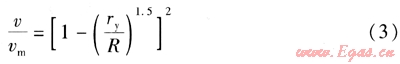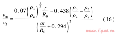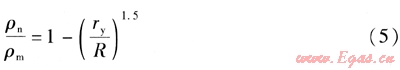 橫截面上距離軸心為ry處的混合氣體密度ρ的計(jì)算公式為: