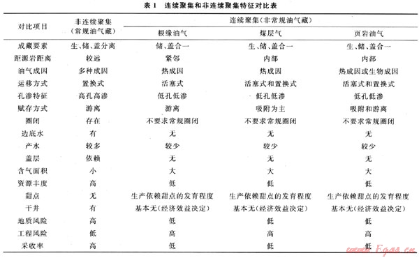 連續(xù)油氣藏一詞最早是USGS(美國(guó)地質(zhì)調(diào)查局)1995年進(jìn)行油氣資源評(píng)價(jià)時(shí)用來(lái)區(qū)別與常規(guī)油氣藏不同的一種新型氣藏的名稱。對(duì)這類油氣藏[括煤層氣藏、頁(yè)巖油氣藏、根緣油氣藏(深盆油氣藏)]需要采用專門的評(píng)價(jià)方法[10]。筆者認(rèn)為,這類連續(xù)油氣藏不但在資源評(píng)價(jià)方法上與常規(guī)油氣藏不同,而且在地質(zhì)特征上也與常規(guī)油氣藏有著本質(zhì)的區(qū)別。