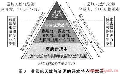 非常規(guī)天然氣資源的開發(fā)特點(diǎn)如圖3所示。