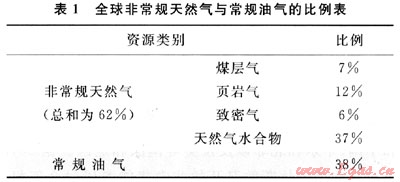 據(jù)2010年3月在美國(guó)休斯敦召開的非常規(guī)能源研討會(huì)資料,目前,全球非常規(guī)天然氣產(chǎn)量已迅速攀升到了3242×108m3/a。非常規(guī)天然氣已經(jīng)成為一支不容忽視和小視的能源“新力量”。