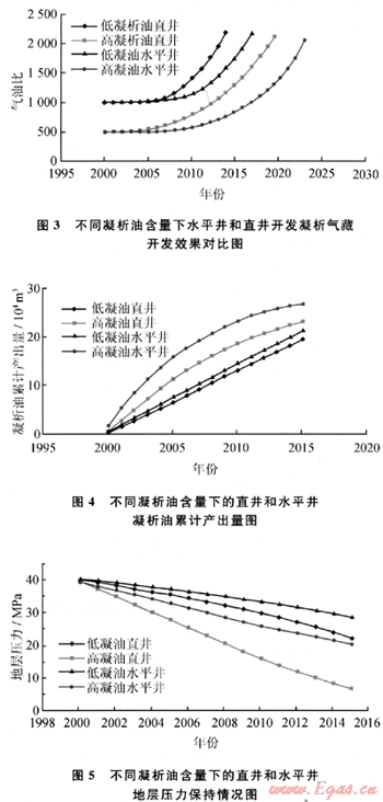 1.3.1不同凝析油含量下水平井和直井開發(fā)凝析氣藏開發(fā)效果