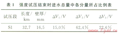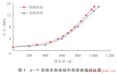 同時,分析預(yù)測曲線中V的組成,其中DV1、DV2、DV3各自所占的比例見表l,由水壓縮性計算而得的DV3,其值超過DV1,是試壓進水量的一個重要因素,不可在計算中忽略。