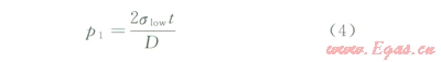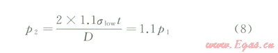 同樣,根據(jù)99%的可靠度,當(dāng)試壓的等效應(yīng)力達到slow時,實際鋼管可承受的環(huán)向應(yīng)力為1.125slow,小數(shù)圓整后為1.1slow,由此對應(yīng)的強度試壓壓力P2計算公式為: