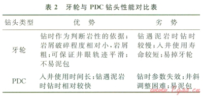 在保證施工質(zhì)量和安全的前提下,為了加快鉆井速度,優(yōu)化了鉆頭選型。主要采用以下兩種優(yōu)化模式:①斜井段采用“1+1”模式;②水平段采用“N+1”模式。“1+1”模式指一個(gè)牙輪鉆頭加一個(gè)PDC鉆頭,“N+1”模式指多個(gè)PDC鉆頭加一個(gè)牙輪鉆頭。牙輪鉆頭作為備用,當(dāng)發(fā)生巖性相變等特殊情況時(shí),用于快速調(diào)整井斜川(表2)。