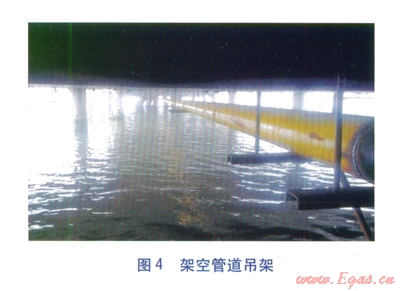 鋼管架空敷設(shè)優(yōu)勢(shì)是緊貼橋身下面,不容易受到海水沖刷和腐蝕,但鋼管吊裝、固定施工難度大。