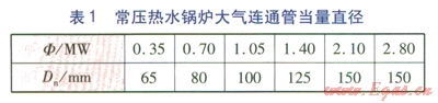 鍋爐房設(shè)計時,可根據(jù)表1核對鍋爐上的大氣連通管的直徑是否合適。