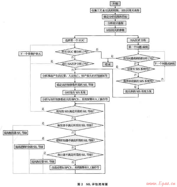圖2所示的流程包括了確定需求資料、確定評(píng)估范圍和目標(biāo)、HAZOP分析、確定評(píng)估對(duì)象所需的SIL等級(jí)和驗(yàn)證評(píng)估對(duì)象SIS系統(tǒng)現(xiàn)有的SIL等級(jí)等,充分利用了HAZOP分析的成果,對(duì)HAZOP識(shí)別出來(lái)的問(wèn)題或缺陷進(jìn)行SIL評(píng)估,而另一方面,對(duì)沒(méi)有進(jìn)行HAZOP分析的SIS進(jìn)行單獨(dú)的SIL評(píng)估。若SIL等級(jí)達(dá)不到所需要求,可以識(shí)別出SIS系統(tǒng)中SIL等級(jí)不夠的單個(gè)或多個(gè)元件。通過(guò)這樣的分析,既解決了HAZOP不能詳細(xì)分析SIS的缺點(diǎn),又解決了SIL評(píng)估可能漏項(xiàng)的缺點(diǎn),為盡可能全面地對(duì)評(píng)估對(duì)象進(jìn)行安全分析并找出SIS潛在的不足提供了一種更為有效的安全評(píng)估方法。