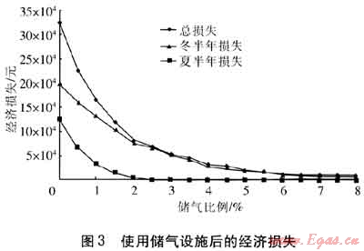 使用儲(chǔ)氣設(shè)施后的燃?xì)庳?fù)荷預(yù)測(cè)誤差造成的經(jīng)濟(jì)損失見圖3。