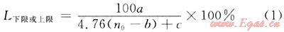 式中L下限或上限為單組分氣體的爆炸下限或上限;n0為每摩爾有機可燃性氣體完全燃燒時所必需氧原子的物質的量;當計算爆炸下限時,a=b=c=1;當計算爆炸上限時,a=c=4,b=0。