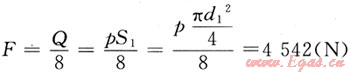 下面不考慮閥蓋等零部件重量的影響,對螺栓進行受力分析。假定每根螺栓受力相同,則由于管線氣體壓力的作用使每根螺栓受到的拉伸力為: