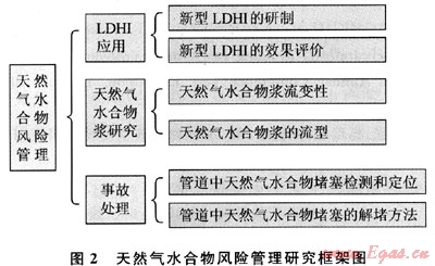 值得高興的是針對上述2個方面的問題,研究人員正在全力解決。目前越來越多的LDHI正被研制出來[11],國外已經(jīng)有很多油氣田在試驗這些新的抑制劑。與此同時,針對含天然氣水合物的油氣混合物漿的流動特性及堵塞特性的研究也在全世界如火如茶地展開。目前天然氣水合物風(fēng)險管理的研究框架如圖2所示,目的就是為石油天然氣工業(yè)提供經(jīng)濟安全的油氣輸送方案[12~19]。