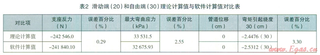 通過(guò)對(duì)兩種應(yīng)力計(jì)算結(jié)果的比較和誤差分析,很容易從上面列表中看出:理論計(jì)算值與軟件計(jì)算值中誤差最大者,即由管線自重引起的支座反力偶和最大彎曲應(yīng)力。這是由于軟件在計(jì)算過(guò)程中采用迭代法,而在理論計(jì)算中忽略了各投影面力矩之間互相關(guān)系的二次項(xiàng),從而造成兩者之間的誤差。因管線自重對(duì)整個(gè)管線應(yīng)力情況的影響最小,我們?cè)谶M(jìn)行管線應(yīng)力分析時(shí)主要考慮的管線影響因素就是溫度和內(nèi)壓。