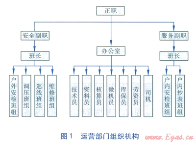 各崗位、工種的職責(zé)確定,能夠最大限度地實(shí)現(xiàn)勞動(dòng)用工的科學(xué)配置,有效地防止因職務(wù)重疊而發(fā)生的工作扯皮現(xiàn)象,提高工作質(zhì)量,同時(shí)也是內(nèi)業(yè)資料形成的基礎(chǔ)。確定工作職責(zé)的前提是要以公司管理范圍、管理目標(biāo)及行業(yè)標(biāo)準(zhǔn)、法規(guī)等劃分崗位,并作為制定本部門各項(xiàng)工作職責(zé)的依據(jù)。燃?xì)膺\(yùn)營部門的主要工作內(nèi)容就是采取主動(dòng)查找燃?xì)庠O(shè)備設(shè)施存在各類隱患的方式來保障平穩(wěn)供氣,因此,運(yùn)營部門工作職責(zé)可確定為4項(xiàng):
