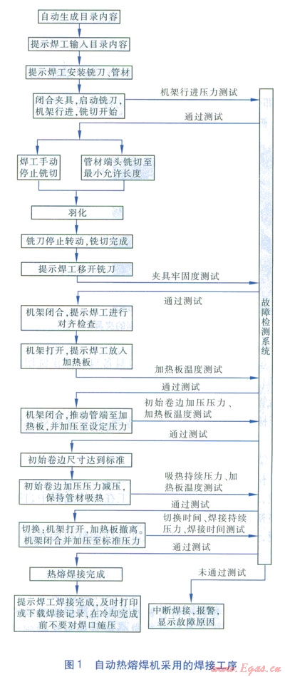 自動化控制的焊接程序具有以下優(yōu)點:減少人工操作步驟,降低人為因素對焊接質(zhì)量的影響;自動設(shè)定、檢測焊接參數(shù),當(dāng)焊接參數(shù)超標(biāo)時可報警并中斷焊接;可提供焊接記錄。
