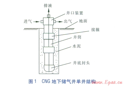 CNG地下儲氣井是我國20世紀90年代中后期研制成功的一種新型高壓儲氣方式。由于其儲氣量大、占地面積小、安全、經濟、操作管理方便、建設工期短等優(yōu)點,廣泛地應用于CNG加氣站、天然氣調峰、工業(yè)儲氣中[1]。由于CNG地下儲氣井主體部分深埋于地下,腐蝕可能導致套管穿孔、壁厚減薄甚至擠毀或爆裂,給整個儲氣系統(tǒng)帶來安全隱患[2],因此探討其外腐蝕原因和防范技術有著重要的現實意義。