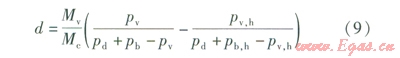 式中d——輸送單位質(zhì)量干煤氣所對(duì)應(yīng)的水蒸氣理論凝結(jié)量,kg/kg