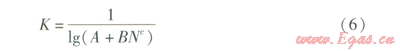 函數(shù)的y軸平移A個單位得到。y軸的平移是必要的,而自變量按比例調(diào)整更為重要,同時為了保證同時工作系數(shù)的精度,將自變量進(jìn)行加冪運(yùn)算。因此,在式(5)的基礎(chǔ)上對擬合函數(shù)的形式進(jìn)行改造,則函數(shù)表達(dá)式就變?yōu)椋?span lang="EN-US">