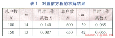 針對該地區(qū)實(shí)際情況,在100~2000戶范圍內(nèi),對置信方程在置信區(qū)間內(nèi)的求解結(jié)果見表l。