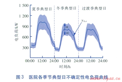 分布式能源系統(tǒng)的優(yōu)化配置對(duì)于獲得好的經(jīng)濟(jì)效益至關(guān)重要,而優(yōu)化配置又強(qiáng)烈依賴于用戶的各類負(fù)荷需求。目前在優(yōu)化配置中通常采用兩種負(fù)荷,一種是夏季、冬季和過渡季等幾種典型日的負(fù)荷預(yù)測(cè)值[7],另一種是全年逐時(shí)(8760h)負(fù)荷預(yù)測(cè)值[8]。但前者忽略了同一個(gè)季節(jié)內(nèi)負(fù)荷的差異;即使是基于后一種方法,現(xiàn)實(shí)中存在的氣象條件、內(nèi)擾不確定性,以及各能量預(yù)測(cè)供應(yīng)的對(duì)象、面積與實(shí)際運(yùn)行時(shí)的偏差,也可能導(dǎo)致聯(lián)供系統(tǒng)的設(shè)備投資浪費(fèi)或不足、經(jīng)濟(jì)效益無(wú)法充分發(fā)揮,極端情況下甚至?xí)霈F(xiàn)停運(yùn)的尷尬局面,上海黃浦區(qū)中心醫(yī)院就是典型的例證[9]。因此,考慮用戶負(fù)荷需求的不確定性,以增強(qiáng)分布式能源系統(tǒng)經(jīng)濟(jì)效益的魯棒性,是聯(lián)供系統(tǒng)優(yōu)化配置的現(xiàn)實(shí)需求。