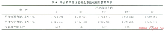 運(yùn)用本文闡述方法進(jìn)行綜合校核評(píng)估的結(jié)果:該型平臺(tái)可在該海域環(huán)境參數(shù)條件下進(jìn)行生產(chǎn)作業(yè)。