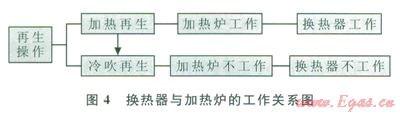 再生操作流程:再生氣(儲氣容器內(nèi)的干氣)經(jīng)調(diào)壓柜節(jié)流降壓后進(jìn)入加熱爐加熱,溫度上升至210℃左右,經(jīng)B熱進(jìn)閥從塔B底部進(jìn)入,與分子篩接觸傳熱,隨著分子篩溫度升高,分子篩吸附的水分及部分烴被再生氣帶走,逐步完成分子篩的再生。當(dāng)脫水塔頂部溫控儀溫度顯示為125℃左右時,標(biāo)志加熱再生階段完成。隨后進(jìn)入脫水塔的冷吹再生階段,關(guān)閉加熱爐電源,繼續(xù)通干氣對分子篩進(jìn)行冷吹降溫,當(dāng)脫水塔頂部溫控儀溫度顯示為125℃左右時,標(biāo)志加熱再生階段完成。隨后進(jìn)入脫水塔的冷吹再生階段,關(guān)閉加熱爐電源,繼續(xù)通干氣對分子篩進(jìn)行冷吹降溫,當(dāng)脫水塔頂部溫度降至40℃以下時,分子篩恢復(fù)吸附能力,停止冷吹,脫水塔再生完成。再生氣經(jīng)脫水塔頂部排出,經(jīng)B熱出閥進(jìn)入冷凝分離器冷卻分離后進(jìn)入回收罐。