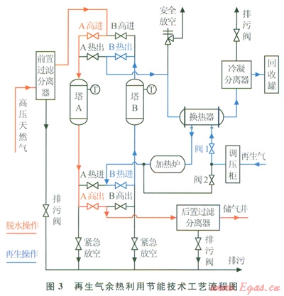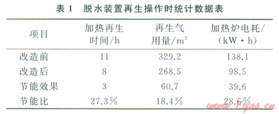 1)應(yīng)用再生氣余熱利用的節(jié)能技術(shù)提高了加熱爐的進(jìn)氣溫度,減少了加熱時間和電耗量,降低了脫水裝置的能耗,技術(shù)上可行。
