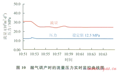 酸氣調壓時的流量壓力實時監(jiān)控如圖ll所示。