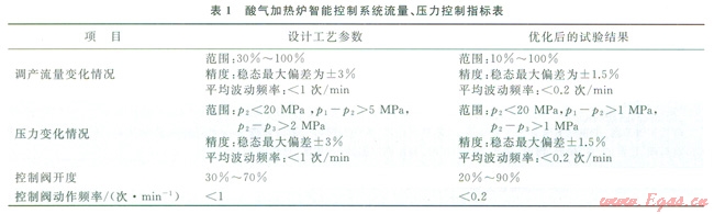 酸氣加熱爐智能控制系統(tǒng)流量、壓力控制指標如表1所示。