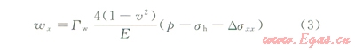 式中z代表x、y;wz是垂直于z方向的裂縫縫寬,mm;E為彈性模量,MPa,u為泊松比,無因次;p為縫內流體壓力,MPa;sc代表垂直于z方向的水平主應力sh或sH,MPa;Dszz為縫間干擾應力,MPa。