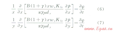 由于縫網(wǎng)內裂縫寬度很小,因此可以假設流體在裂縫中的流動遵循流體滲流方程,則橢圓滲流方程為: