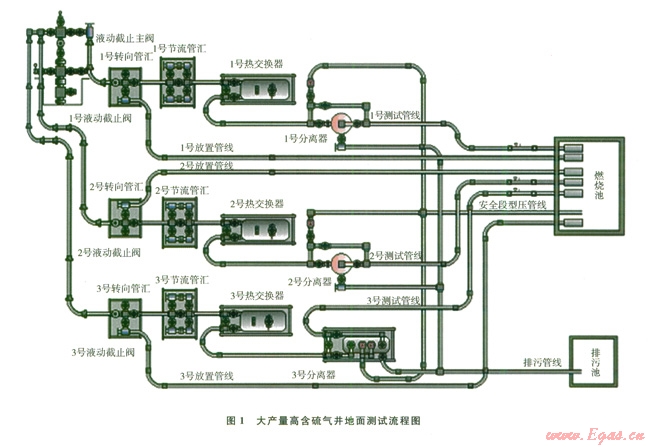圖1為大產(chǎn)量高含硫氣井地面測(cè)試流程圖。