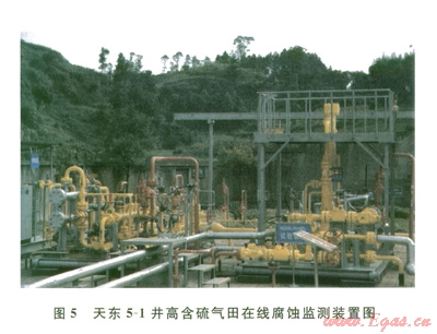 自主研發(fā)了國(guó)內(nèi)首個(gè)高含硫氣田在線(xiàn)腐蝕試驗(yàn)裝置,形成了可變流速、氣液兩相高壓在線(xiàn)腐蝕監(jiān)測(cè)技術(shù),可在實(shí)際流態(tài)條件下對(duì)材料耐蝕性能進(jìn)行在線(xiàn)監(jiān)測(cè),驗(yàn)證材料和焊接工藝在現(xiàn)場(chǎng)應(yīng)用的可靠性。圖5為天東5-1井高含硫氣田在線(xiàn)腐蝕監(jiān)測(cè)裝置。