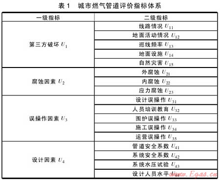 城市燃?xì)夤艿赖木C合評(píng)價(jià)指標(biāo)體系是對(duì)燃?xì)夤艿肋M(jìn)行風(fēng)險(xiǎn)評(píng)價(jià)的基礎(chǔ)。依據(jù)一套能夠全面反映燃?xì)夤艿老到y(tǒng)運(yùn)行狀態(tài)的評(píng)價(jià)指標(biāo)體系所作出的風(fēng)險(xiǎn)評(píng)價(jià)結(jié)果能夠真實(shí)地反映城市燃?xì)夤艿里L(fēng)險(xiǎn)狀況;能夠?yàn)槿細(xì)夤绢A(yù)防危險(xiǎn)事故的發(fā)生提供合理且有效的信息。可見(jiàn)構(gòu)建全面科學(xué)的評(píng)價(jià)指標(biāo)體系對(duì)于風(fēng)險(xiǎn)評(píng)價(jià)具有舉足輕重的作用,同時(shí)也能夠推進(jìn)城市燃?xì)夤艿老到y(tǒng)風(fēng)險(xiǎn)管理體系的建設(shè)。