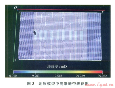 1)利用等效滲流原理將縫網(wǎng)帶等效為高滲透帶,利用體積及等效滲透率在地質(zhì)模型中對(duì)縫網(wǎng)進(jìn)行表征,建立高滲透帶參數(shù)優(yōu)化模型。