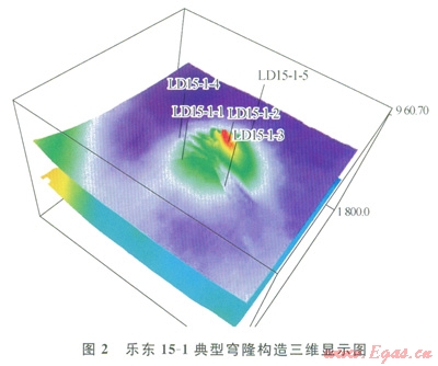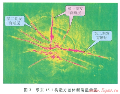 樂東l5-1構(gòu)造中的每條斷層因其所處位置的差異。所受泥底辟應力的作用也存在差異。因此,各斷層的特征和活動強度也各不相同。總體上說,斷距在背斜頂部最大,向翼部斷距逐漸變小直至消失,斷層延伸長度最大約6.5km,落差為0~180m。